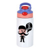 Κρητικός "Ίντα λες ωρέ κοπέλι", Παιδικό παγούρι θερμό, ανοξείδωτο, με καλαμάκι ασφαλείας, ροζ/μωβ (350ml)