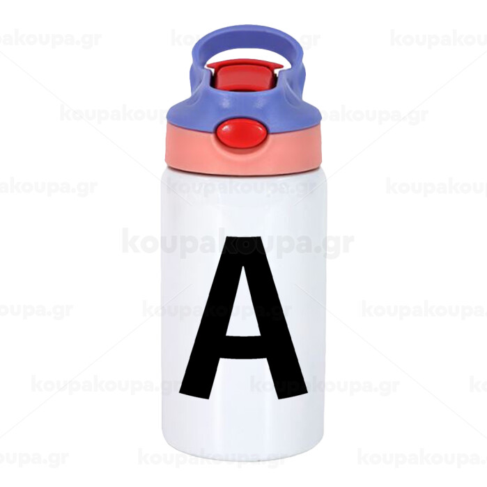 Μονόγραμμα , Παιδικό παγούρι θερμό, ανοξείδωτο, με καλαμάκι ασφαλείας, ροζ/μωβ (350ml)