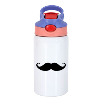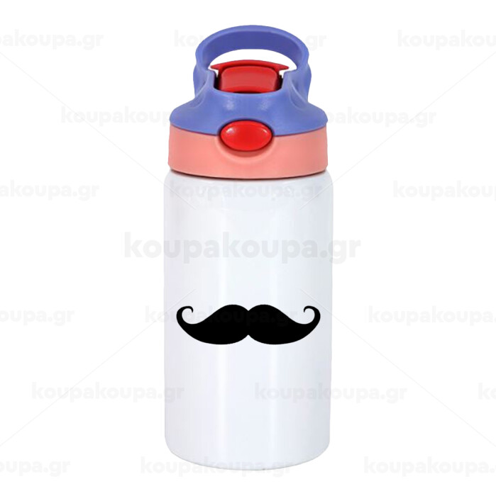 Μουστάκι, Παιδικό παγούρι θερμό, ανοξείδωτο, με καλαμάκι ασφαλείας, ροζ/μωβ (350ml)