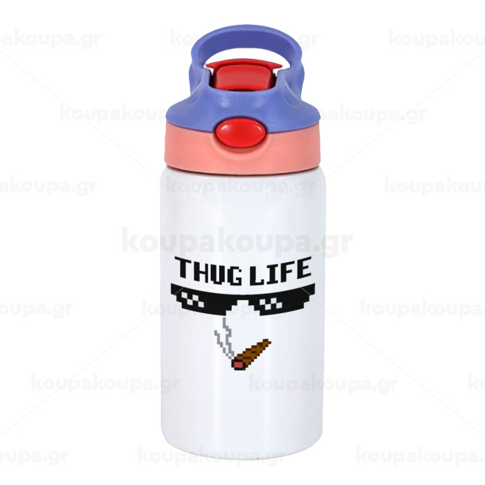 thug life, Παιδικό παγούρι θερμό, ανοξείδωτο, με καλαμάκι ασφαλείας, ροζ/μωβ (350ml)