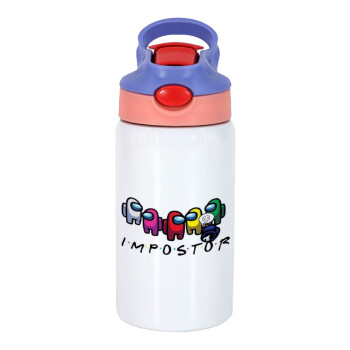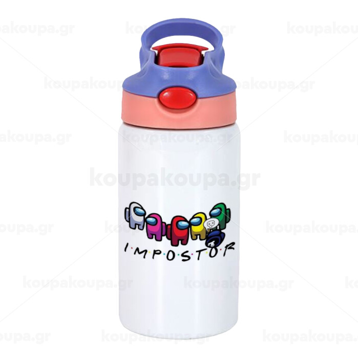 Among US impostor, Παιδικό παγούρι θερμό, ανοξείδωτο, με καλαμάκι ασφαλείας, ροζ/μωβ (350ml)