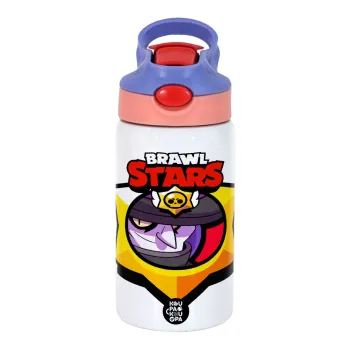Brawl Stars Mortis, Παιδικό παγούρι θερμό, ανοξείδωτο, με καλαμάκι ασφαλείας, ροζ/μωβ (350ml)