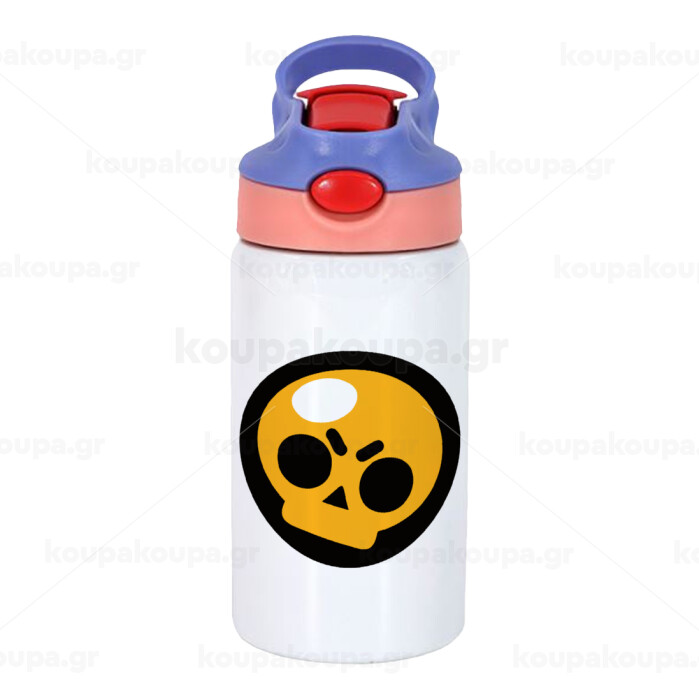 Brawl Stars Skull, Παιδικό παγούρι θερμό, ανοξείδωτο, με καλαμάκι ασφαλείας, ροζ/μωβ (350ml)