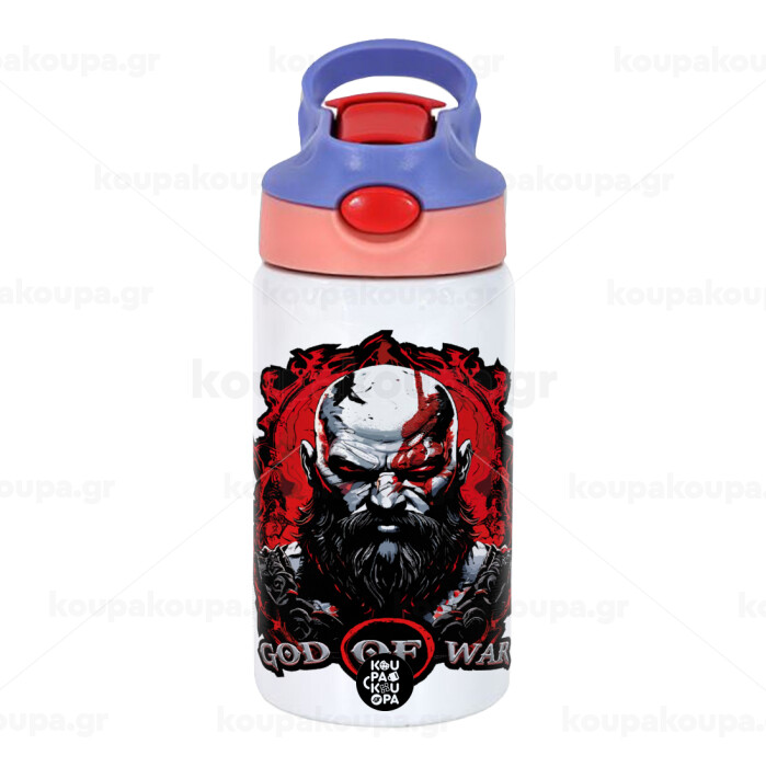 God of war, Παιδικό παγούρι θερμό, ανοξείδωτο, με καλαμάκι ασφαλείας, ροζ/μωβ (350ml)