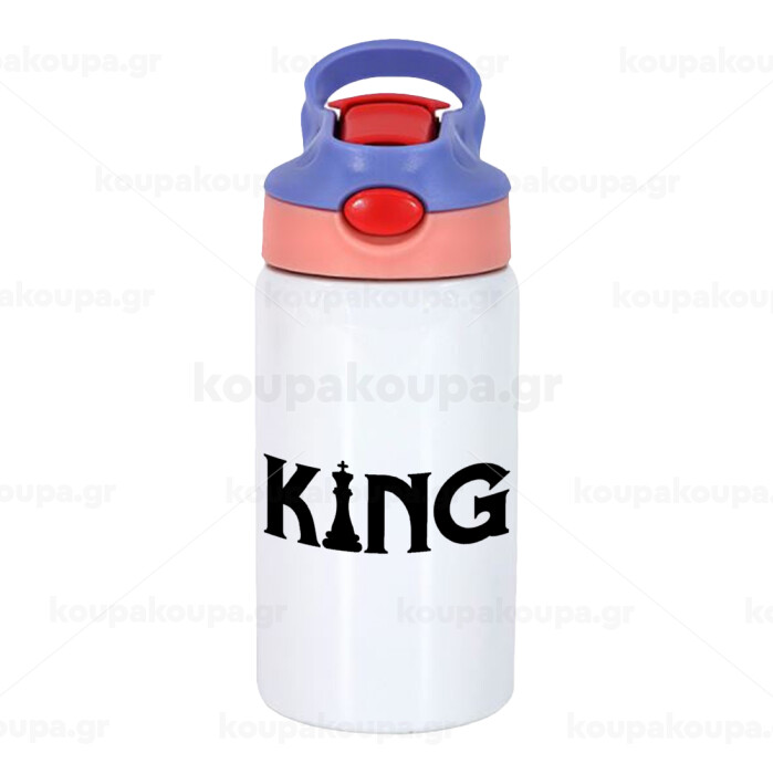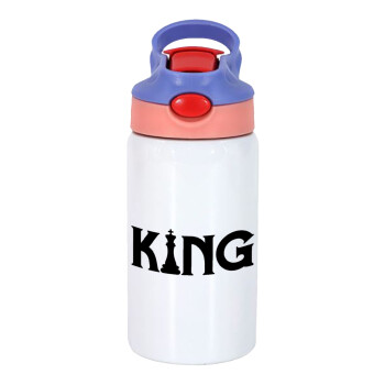 King chess, Παιδικό παγούρι θερμό, ανοξείδωτο, με καλαμάκι ασφαλείας, ροζ/μωβ (350ml)