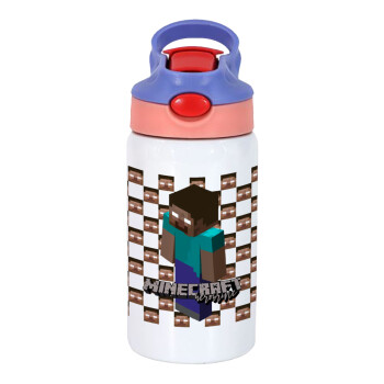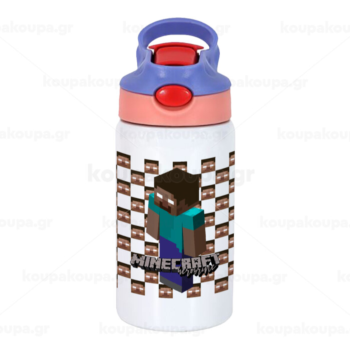 Minecraft herobrine, Παιδικό παγούρι θερμό, ανοξείδωτο, με καλαμάκι ασφαλείας, ροζ/μωβ (350ml)