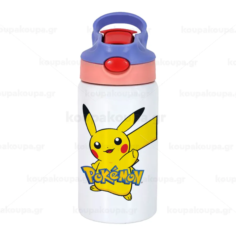 Pokemon pikachu, Παιδικό παγούρι θερμό, ανοξείδωτο, με καλαμάκι ασφαλείας, ροζ/μωβ (350ml)