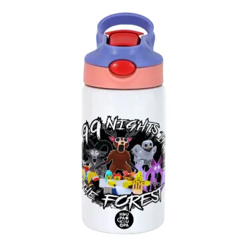 Roblox 99 nights in the forest, Παιδικό παγούρι θερμό, ανοξείδωτο, με καλαμάκι ασφαλείας, ροζ/μωβ (350ml)
