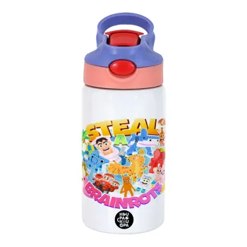 Roblox Steal a Brainrot, Παιδικό παγούρι θερμό, ανοξείδωτο, με καλαμάκι ασφαλείας, ροζ/μωβ (350ml)