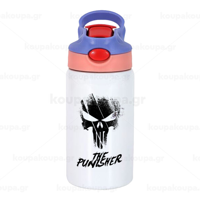 The punisher, Παιδικό παγούρι θερμό, ανοξείδωτο, με καλαμάκι ασφαλείας, ροζ/μωβ (350ml)
