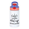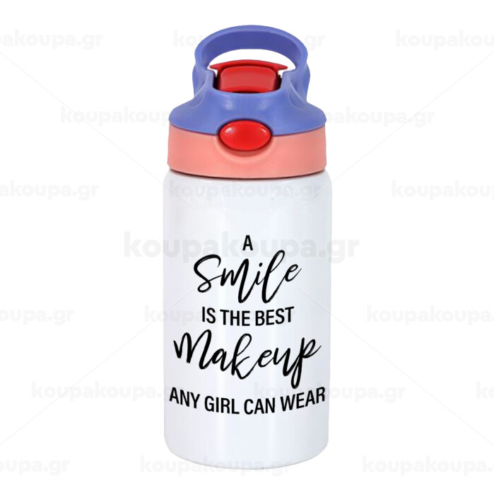A slime is the best makeup any girl can wear, Παιδικό παγούρι θερμό, ανοξείδωτο, με καλαμάκι ασφαλείας, ροζ/μωβ (350ml)