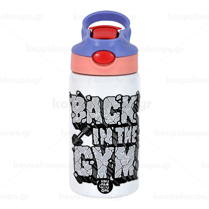 Back in the GYM, Παιδικό παγούρι θερμό, ανοξείδωτο, με καλαμάκι ασφαλείας, ροζ/μωβ (350ml)