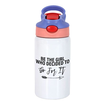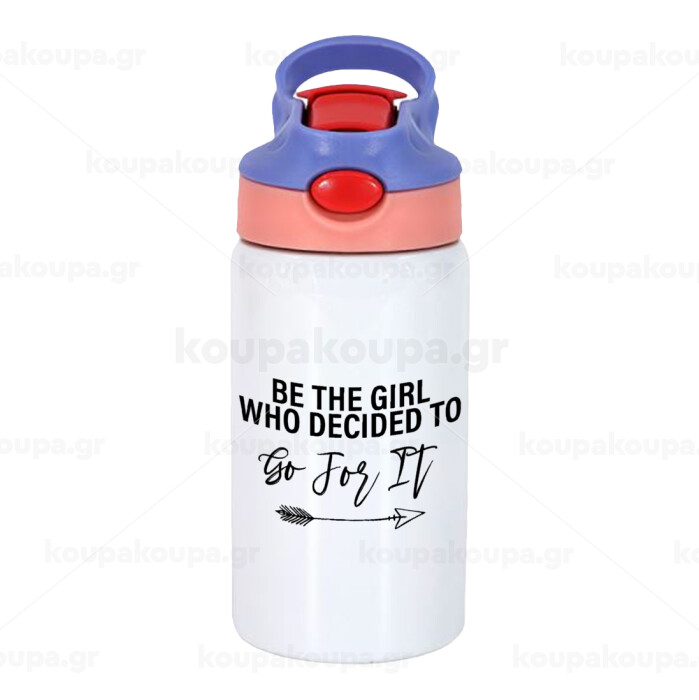 Be the girl who decided to, Παιδικό παγούρι θερμό, ανοξείδωτο, με καλαμάκι ασφαλείας, ροζ/μωβ (350ml)