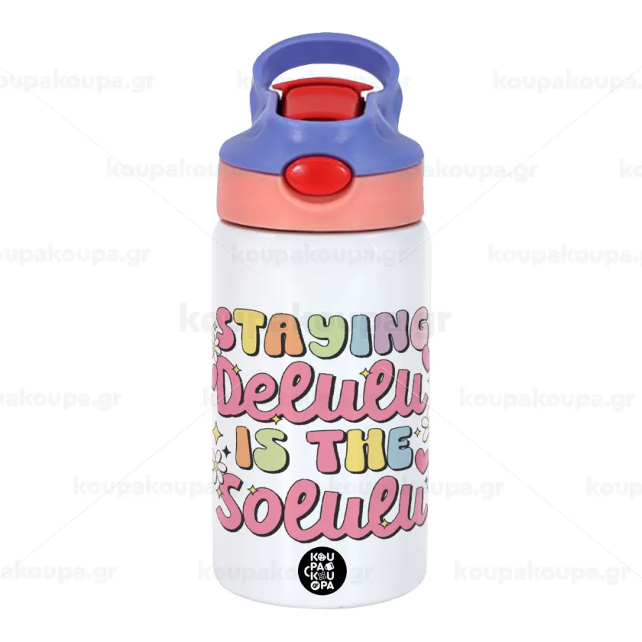Delulu, Παιδικό παγούρι θερμό, ανοξείδωτο, με καλαμάκι ασφαλείας, ροζ/μωβ (350ml)