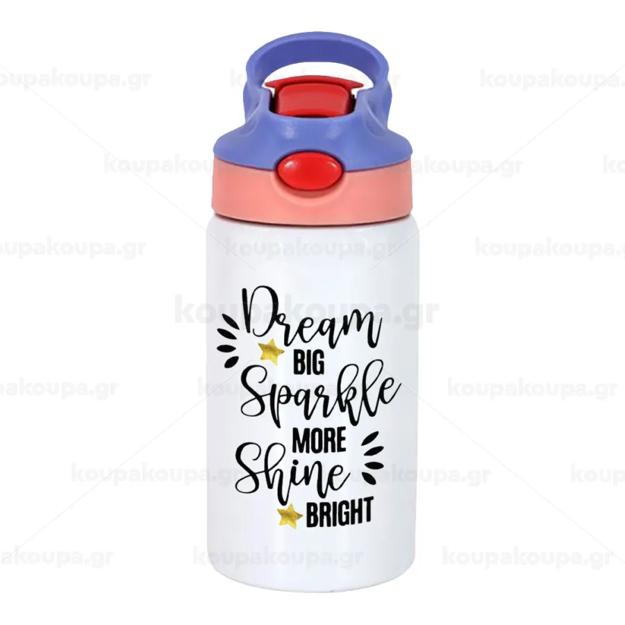 Dream big, Sparkle more, Shine bright, Παιδικό παγούρι θερμό, ανοξείδωτο, με καλαμάκι ασφαλείας, ροζ/μωβ (350ml)