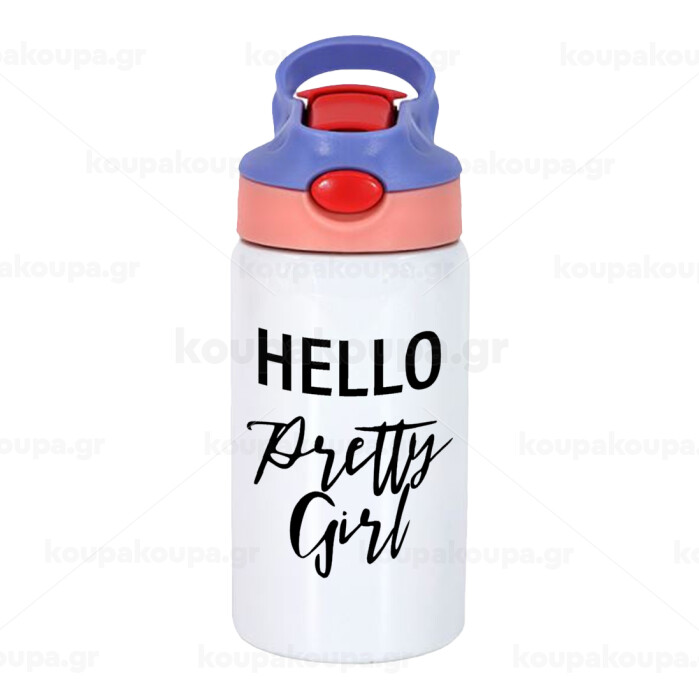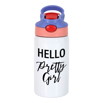 Hello pretty girl, Παιδικό παγούρι θερμό, ανοξείδωτο, με καλαμάκι ασφαλείας, ροζ/μωβ (350ml)