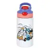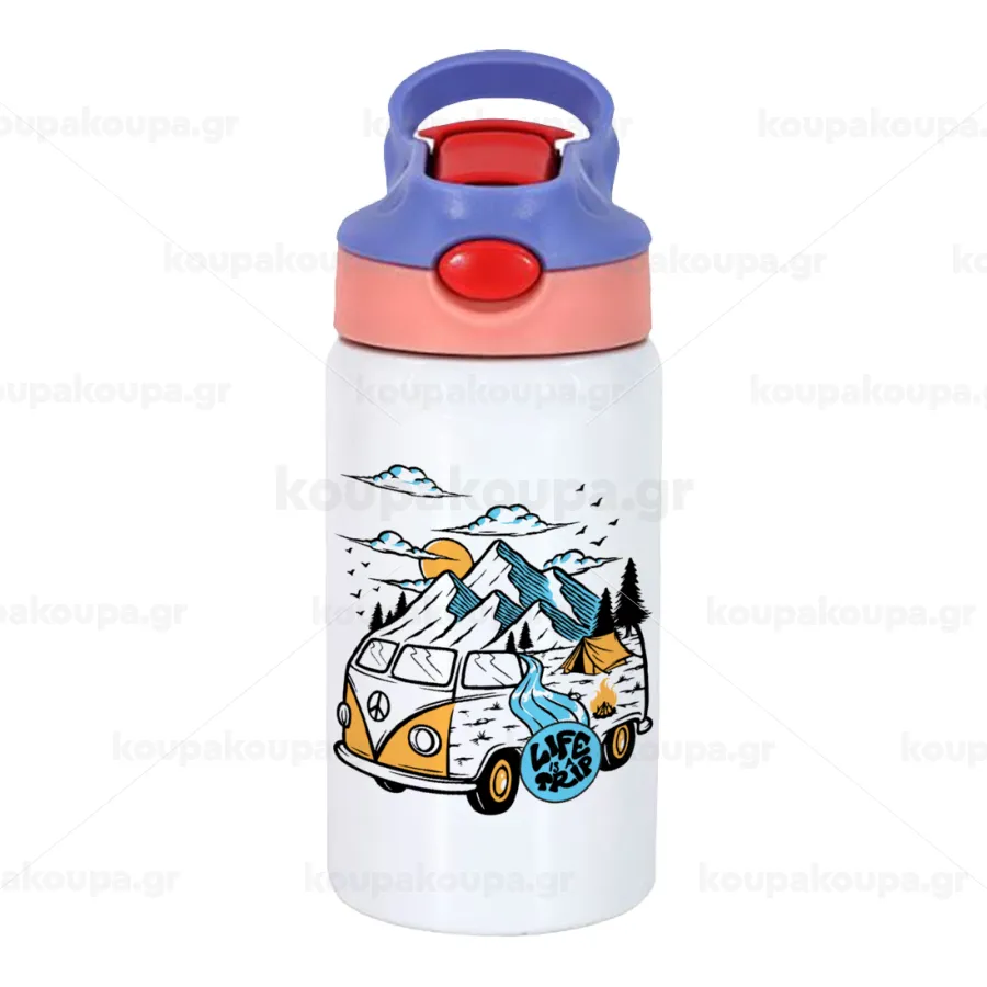 Life is a trip, Παιδικό παγούρι θερμό, ανοξείδωτο, με καλαμάκι ασφαλείας, ροζ/μωβ (350ml)