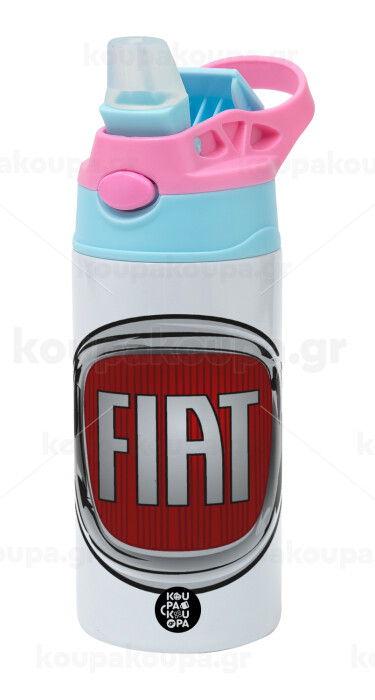 FIAT, Παιδικό παγούρι θερμό, ανοξείδωτο, με καλαμάκι ασφαλείας, Ροζ/Σιελ (360ml) BPA FREE