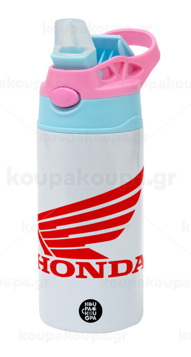 Honda, Παιδικό παγούρι θερμό, ανοξείδωτο, με καλαμάκι ασφαλείας, Ροζ/Σιελ (360ml) BPA FREE
