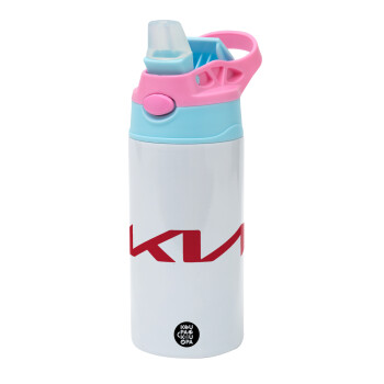 KIA, Παιδικό παγούρι θερμό, ανοξείδωτο, με καλαμάκι ασφαλείας, Ροζ/Σιελ (360ml) BPA FREE