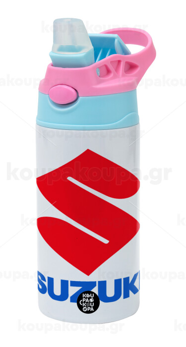 SUZUKI, Παιδικό παγούρι θερμό, ανοξείδωτο, με καλαμάκι ασφαλείας, Ροζ/Σιελ (360ml) BPA FREE