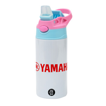 Yamaha, Παιδικό παγούρι θερμό, ανοξείδωτο, με καλαμάκι ασφαλείας, Ροζ/Σιελ (360ml) BPA FREE
