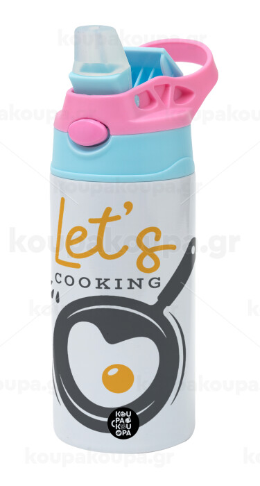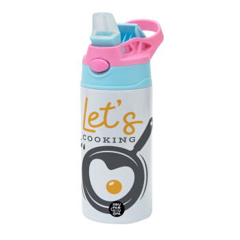 Let's cooking, Παιδικό παγούρι θερμό, ανοξείδωτο, με καλαμάκι ασφαλείας, Ροζ/Σιελ (360ml) BPA FREE
