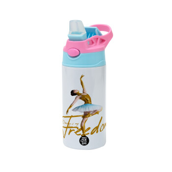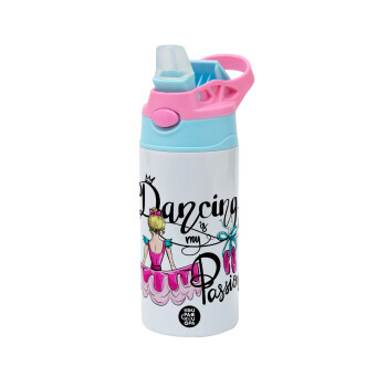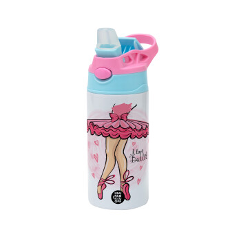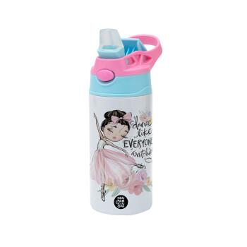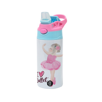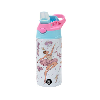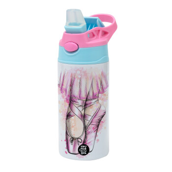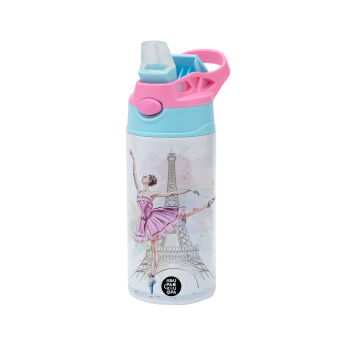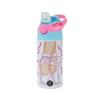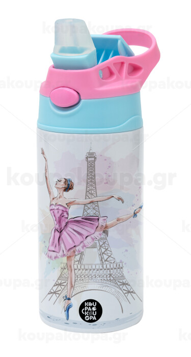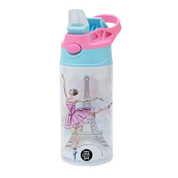 Ballerina in Paris, Παιδικό παγούρι θερμό, ανοξείδωτο, με καλαμάκι ασφαλείας, Ροζ/Σιελ (360ml) BPA FREE