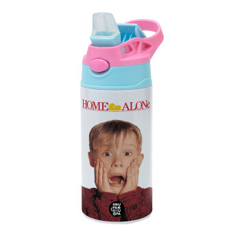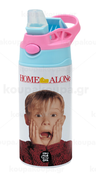 Μόνος στο σπίτι Kevin McCallister Shocked, Παιδικό παγούρι θερμό, ανοξείδωτο, με καλαμάκι ασφαλείας, Ροζ/Σιελ (360ml) BPA FREE