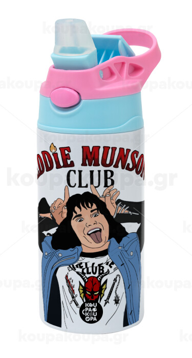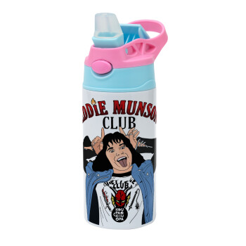 Eddie Munson, Παιδικό παγούρι θερμό, ανοξείδωτο, με καλαμάκι ασφαλείας, Ροζ/Σιελ (360ml) BPA FREE