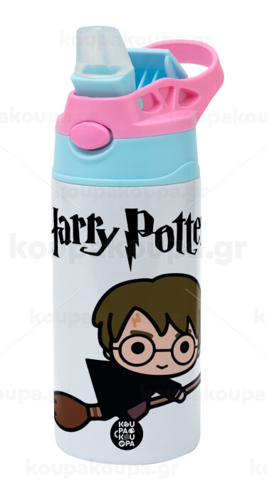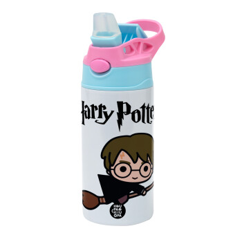Harry potter kid, Παιδικό παγούρι θερμό, ανοξείδωτο, με καλαμάκι ασφαλείας, Ροζ/Σιελ (360ml) BPA FREE