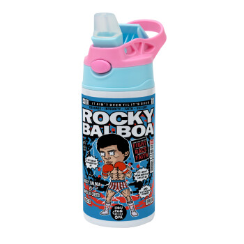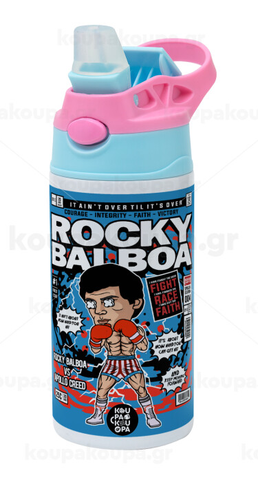 Rocky Balboa, Παιδικό παγούρι θερμό, ανοξείδωτο, με καλαμάκι ασφαλείας, Ροζ/Σιελ (360ml) BPA FREE