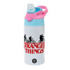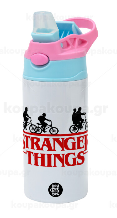 Stranger Things red, Παιδικό παγούρι θερμό, ανοξείδωτο, με καλαμάκι ασφαλείας, Ροζ/Σιελ (360ml) BPA FREE