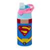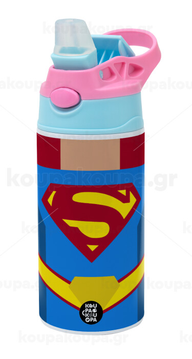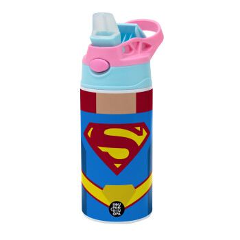 Superman flat, Παιδικό παγούρι θερμό, ανοξείδωτο, με καλαμάκι ασφαλείας, Ροζ/Σιελ (360ml) BPA FREE