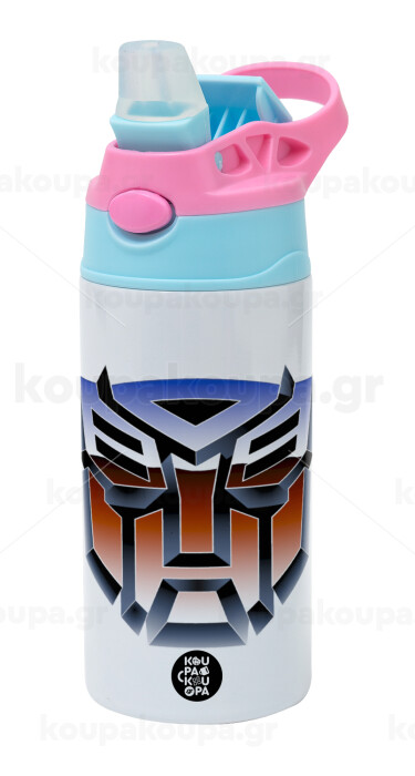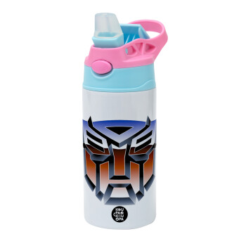 Transformers, Παιδικό παγούρι θερμό, ανοξείδωτο, με καλαμάκι ασφαλείας, Ροζ/Σιελ (360ml) BPA FREE