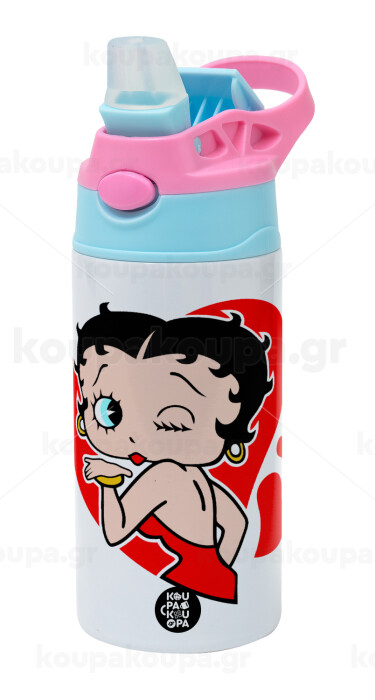 Betty Boop, Παιδικό παγούρι θερμό, ανοξείδωτο, με καλαμάκι ασφαλείας, Ροζ/Σιελ (360ml) BPA FREE