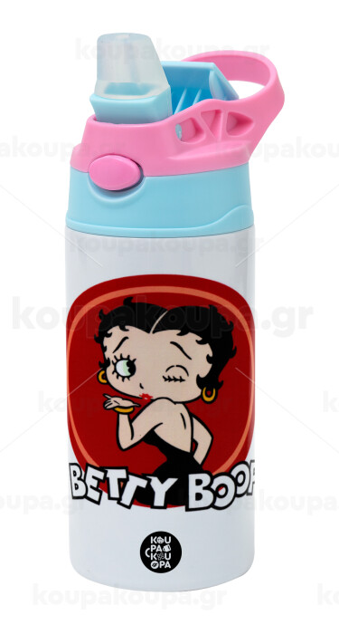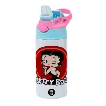 Betty Boop kiss, Παιδικό παγούρι θερμό, ανοξείδωτο, με καλαμάκι ασφαλείας, Ροζ/Σιελ (360ml) BPA FREE