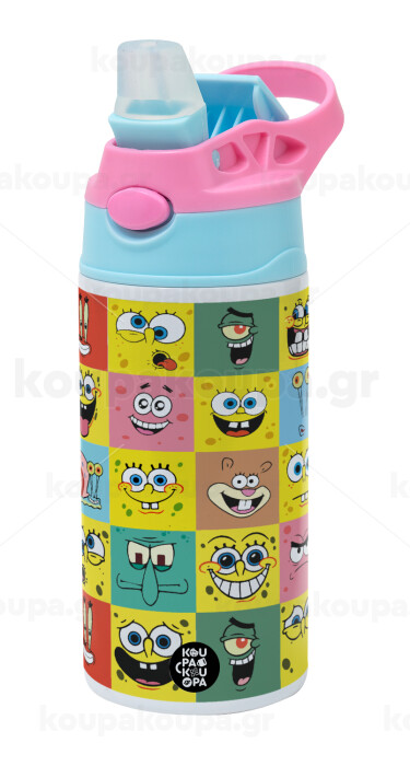 Ο μπομπ και οι φίλοι του, Παιδικό παγούρι θερμό, ανοξείδωτο, με καλαμάκι ασφαλείας, Ροζ/Σιελ (360ml) BPA FREE
