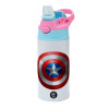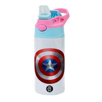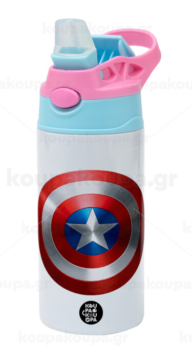Captain America, Παιδικό παγούρι θερμό, ανοξείδωτο, με καλαμάκι ασφαλείας, Ροζ/Σιελ (360ml) BPA FREE