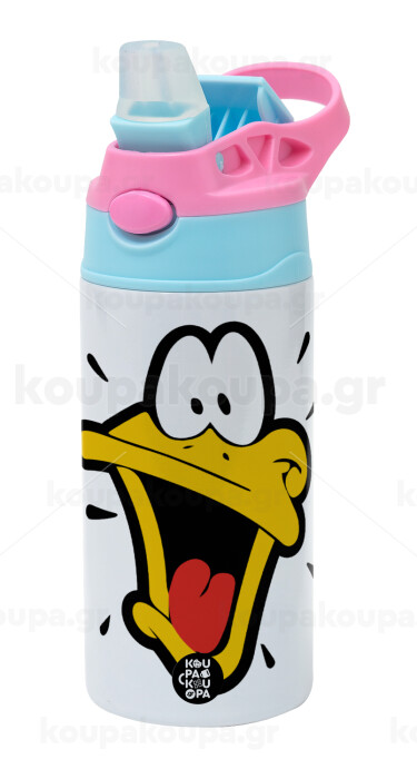 Daffy Duck, Παιδικό παγούρι θερμό, ανοξείδωτο, με καλαμάκι ασφαλείας, Ροζ/Σιελ (360ml) BPA FREE
