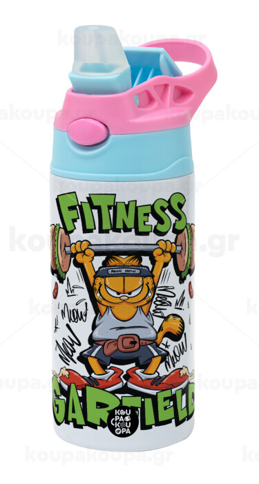 Garfield Fitness, Παιδικό παγούρι θερμό, ανοξείδωτο, με καλαμάκι ασφαλείας, Ροζ/Σιελ (360ml) BPA FREE