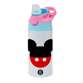 Mickey head, Παιδικό παγούρι θερμό, ανοξείδωτο, με καλαμάκι ασφαλείας, Ροζ/Σιελ (360ml) BPA FREE
