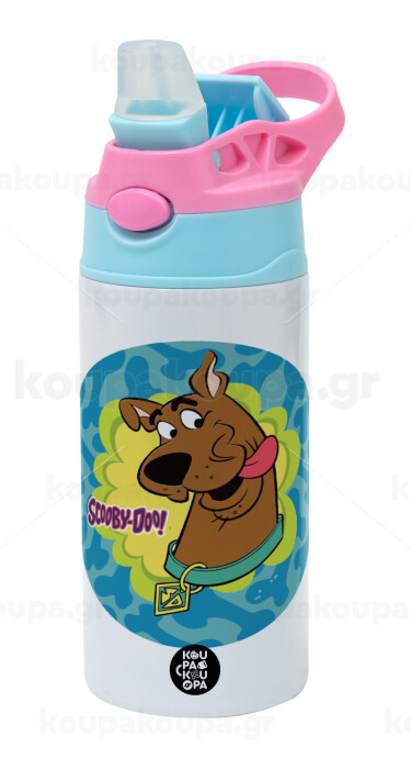 Scooby Doo, Παιδικό παγούρι θερμό, ανοξείδωτο, με καλαμάκι ασφαλείας, Ροζ/Σιελ (360ml) BPA FREE