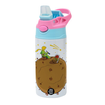 Ο μικρός πρίγκιπας planet, Παιδικό παγούρι θερμό, ανοξείδωτο, με καλαμάκι ασφαλείας, Ροζ/Σιελ (360ml) BPA FREE