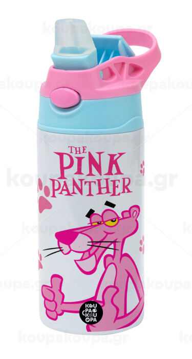 The pink panther, Παιδικό παγούρι θερμό, ανοξείδωτο, με καλαμάκι ασφαλείας, Ροζ/Σιελ (360ml) BPA FREE