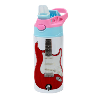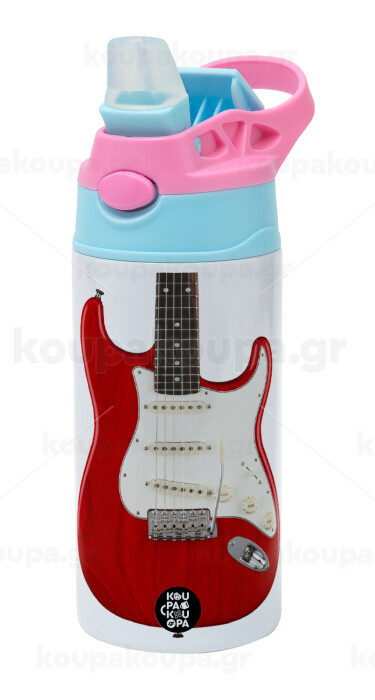 Guitar stratocaster, Παιδικό παγούρι θερμό, ανοξείδωτο, με καλαμάκι ασφαλείας, Ροζ/Σιελ (360ml) BPA FREE