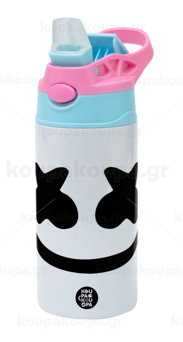 Marshmello, Παιδικό παγούρι θερμό, ανοξείδωτο, με καλαμάκι ασφαλείας, Ροζ/Σιελ (360ml) BPA FREE