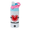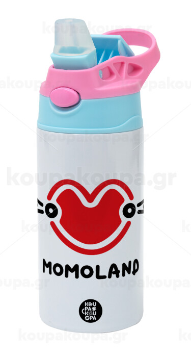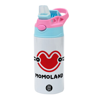 Momoland, Παιδικό παγούρι θερμό, ανοξείδωτο, με καλαμάκι ασφαλείας, Ροζ/Σιελ (360ml) BPA FREE
