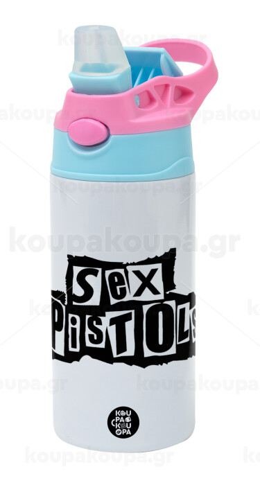 Sex Pistols, Παιδικό παγούρι θερμό, ανοξείδωτο, με καλαμάκι ασφαλείας, Ροζ/Σιελ (360ml) BPA FREE