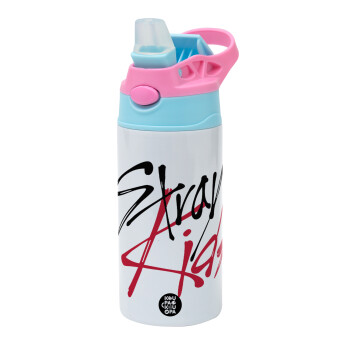 Stray Kids, Παιδικό παγούρι θερμό, ανοξείδωτο, με καλαμάκι ασφαλείας, Ροζ/Σιελ (360ml) BPA FREE